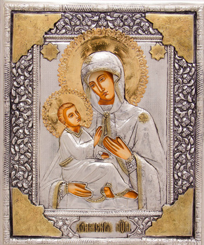 ( ilość produktów: 112 )Srebrzona i złocona Ikona Matki Bożej Chełmskiej, ręcznie malowana nr 92